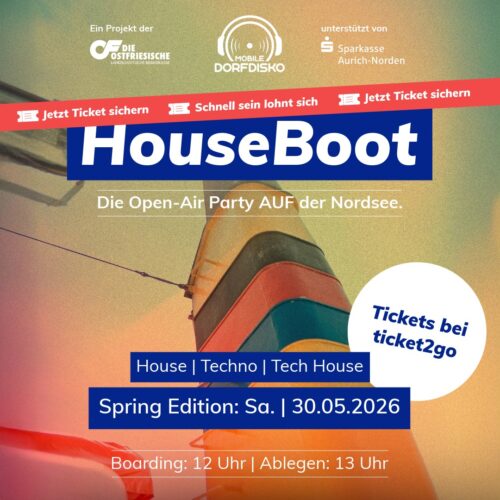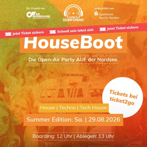 Lass dich von Wellen, Beats und frischer Brise mitreißen und verbringe mit deinen FreundInnen einen außergewöhnlichen Tag auf unserem charmanten ostfriesischen Fährschiff. Mitten auf der Nordsee erwartet dich ein elektrisierendes Sounderlebnis: House, Tech House und Techno – live gemixt von unseren DJs.